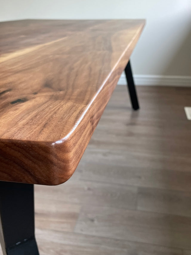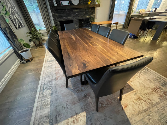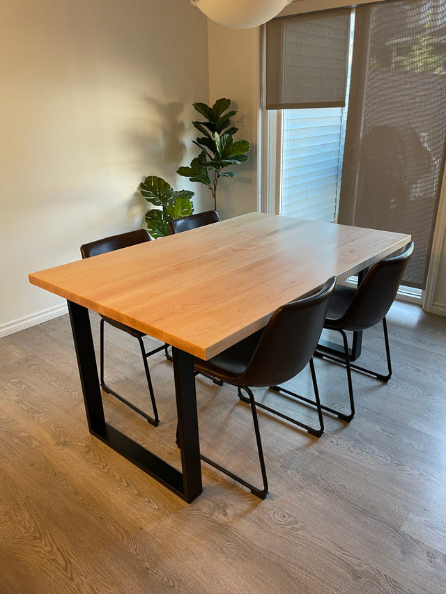 Our tables are professionally spray finished with a durable, food-safe, polyurethane finish. This adds an incredible layer of protection against scratches, heat, and water!