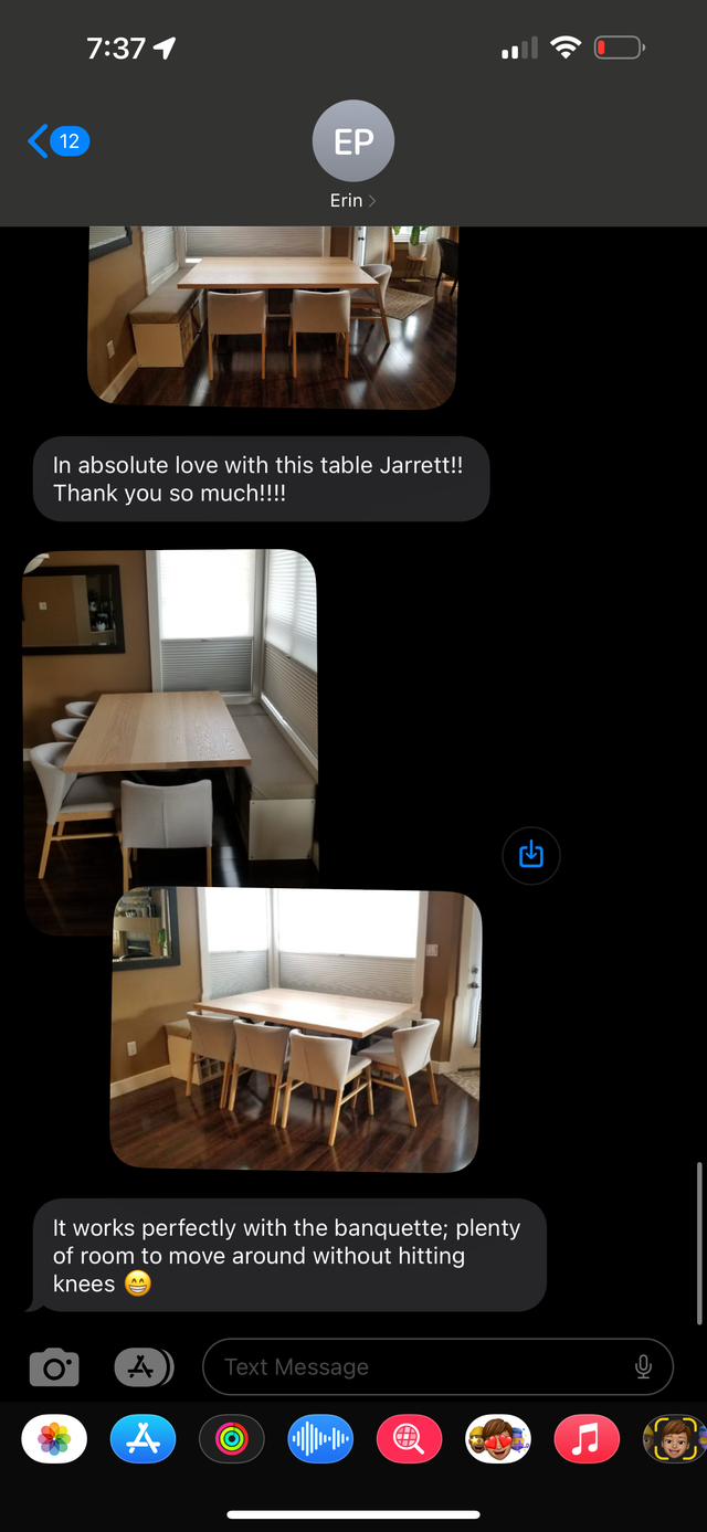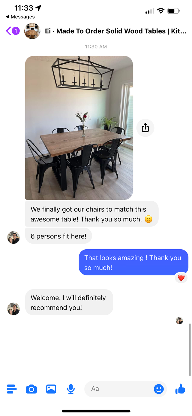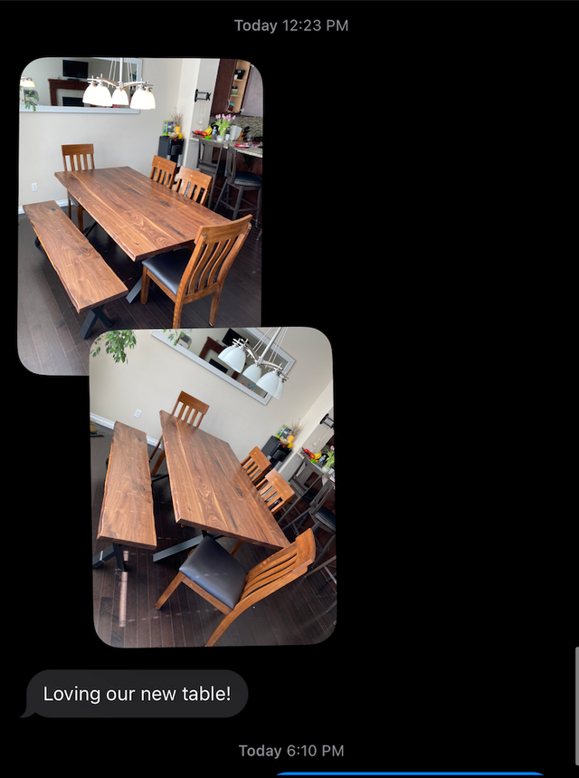 We will go through some wood options, leg styles, stains, and explain the process for making you a masterpiece!